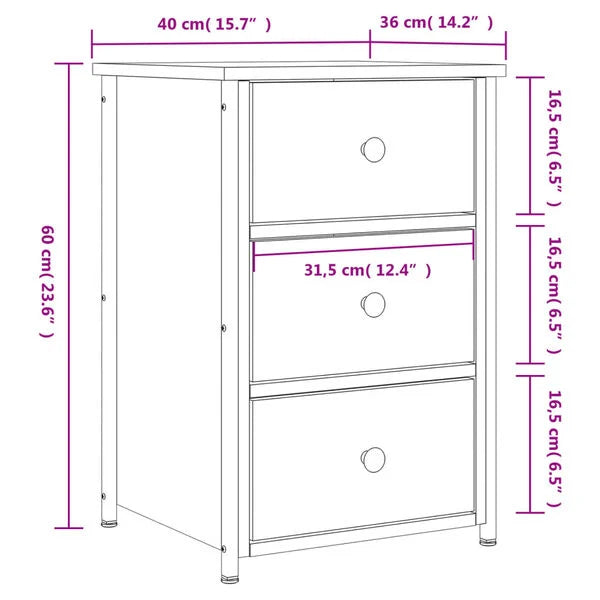 Met zijn combinatie van praktische opbergruimte en industriële charme is dit nachtkastje met 3 lades de ideale aanvulling voor je slaapkamer of logeerkamer.